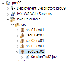 1. 다음과 같이 세션 테스트를 위한 실습 파일인 SessionTest 클래스를 준비한다.