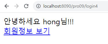 8. 회원정보보기를 클릭하면 이미 로그인 상태이므로 세션에 저장된 회원 정보가 표시된다.