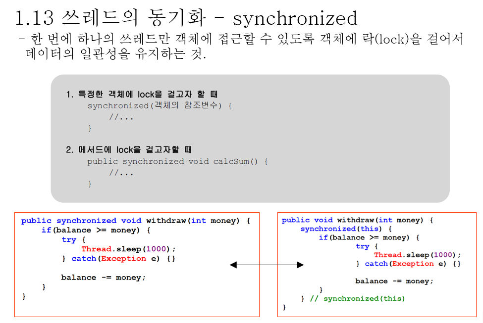 synchronized (this) { // 방법2 == 동기화 블럭을 이용하여 설정한다.