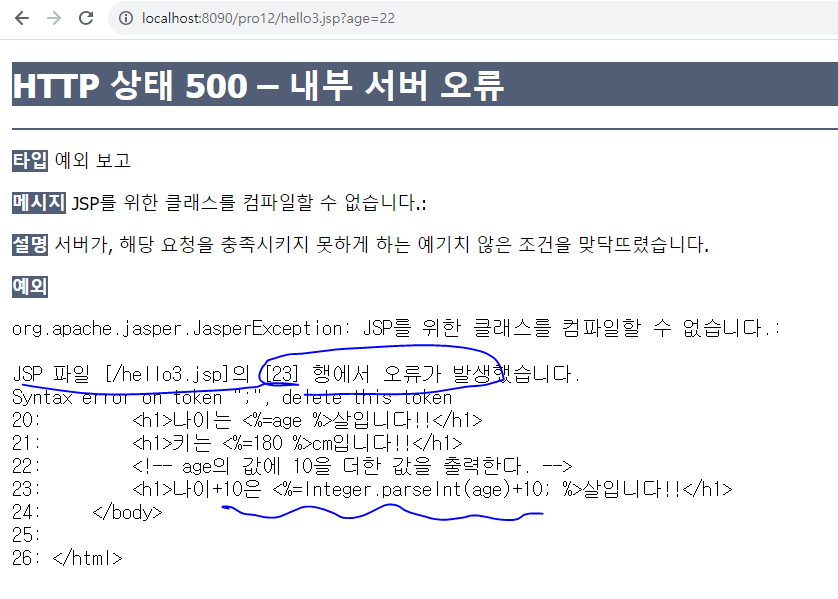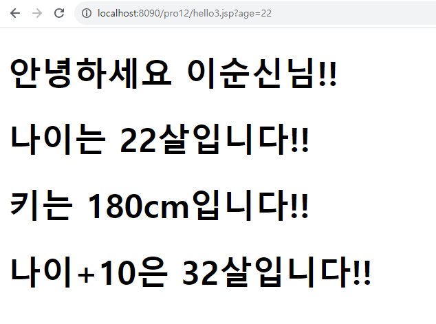 - http://localhost:8090/pro12/hello3.jsp?age=22