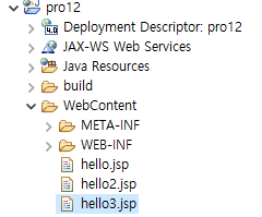 1. 새 프로젝트 pro12를 만들고 hello.jsp 파일을 생성한다.