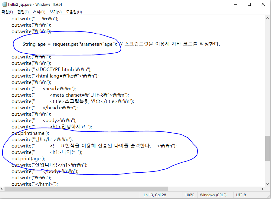 String age = request.getParameter("age"); // 스크립트릿을 이용해 자바 코드를 작성한다.