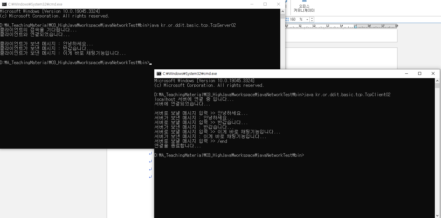 - 서버용 : java kr.or.ddit.basic.tcp.TcpServer02