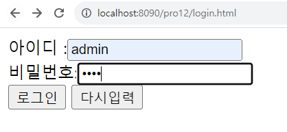 2. login.html을 다음과 같이 작성한다. 로그인창에서 ID와 비밀번호를 입력한 후 action의 result.jsp로 전송한다.