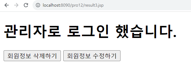 3. result.jsp를 다음과 같이 작성한다. 스크립트릿을 이용해 전송된 ID와 비밀번호를 가져온 후 표현식을 이용해 변수의 값을 출력한다.