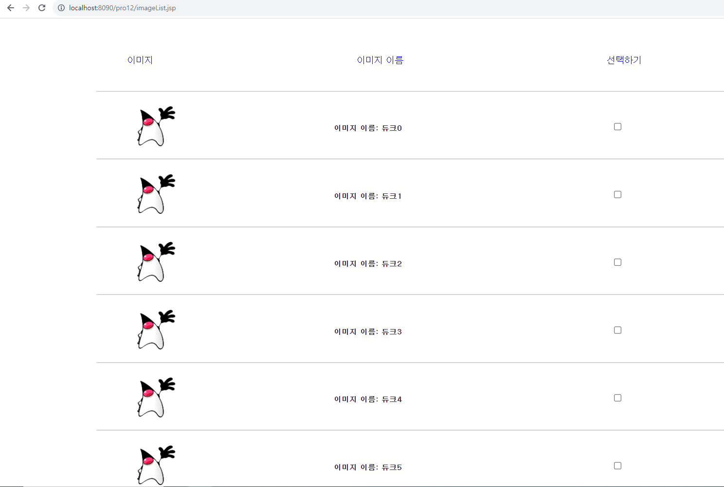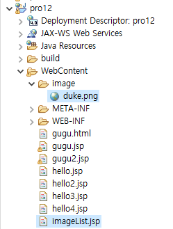 1. imageList.jsp를 생성하고 실습 이미지인 duke.jsp를 추가한다.