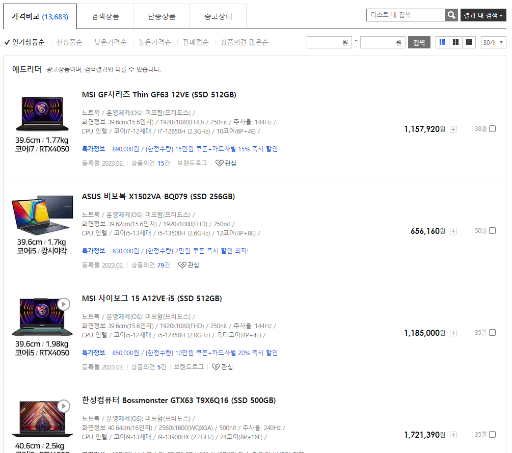 * 리스트로 출력하는 기능은 웹 페이지에서 많이 사용하는 기능이다. 다음 그림처럼 쇼핑몰에서 상품 검색 결과를 리스트로 출력하는 기능도 <ul> 태그 안의 <li> 태그를 for 반복문을 이용해서 나타낸다.