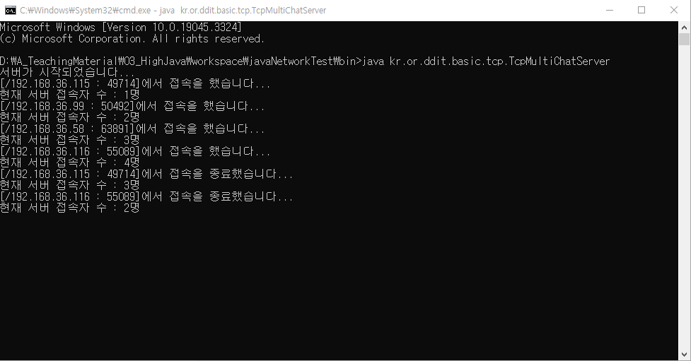 - 서버 : java kr.or.ddit.basic.tcp.TcpMultiChatServer2