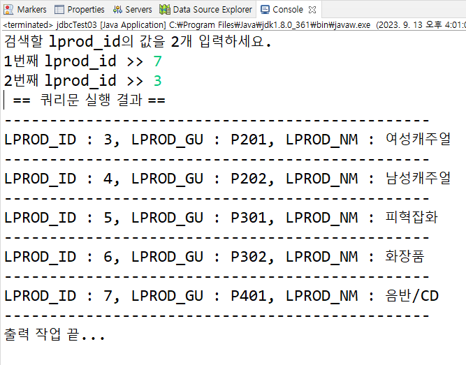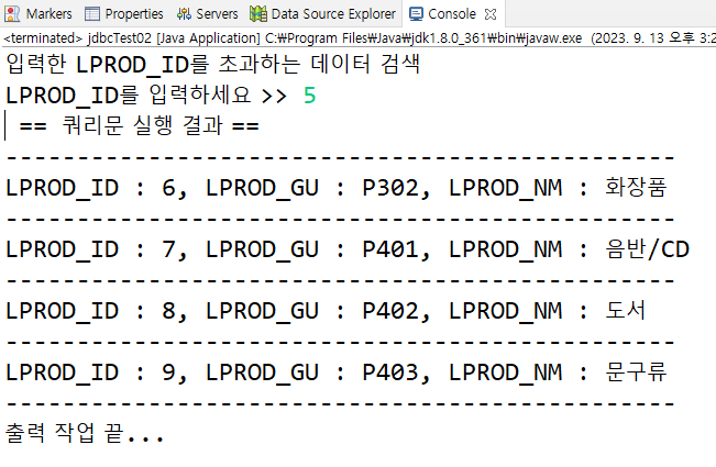 System.out.print("상품 분류명(LPROD_NM) 입력 >> ");