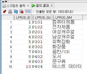 // 1. lprod_id는 현재의 lprod_id값 중에서 제일 큰 값보다 1 크게 한다.