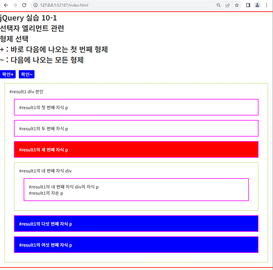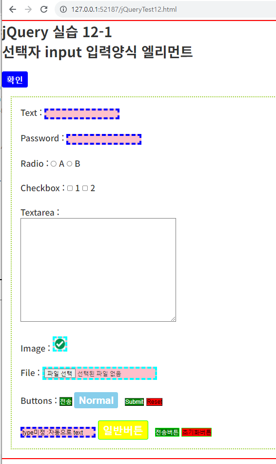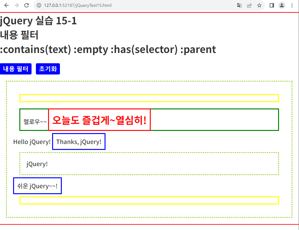 // jQuery가 포함된 span태그 의 테두리 파랑