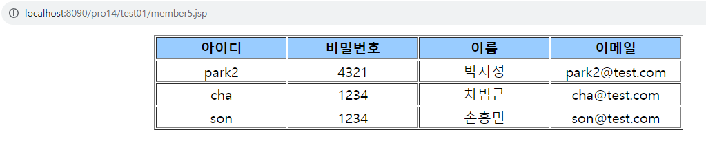 <td>${m.addr.zipcode}</td> <!-- 2. 자바 빈의 속성 이름과 .(마침표) 연산자를 이용해 주소를 출력한다. -->