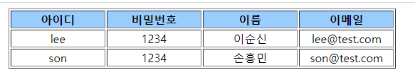 MemberBean member = new MemberBean("lee", "1234", "이순신", "lee@test.com"); // MemberBean 객체 생성 후 회원 정보를 속성에 설정한다.