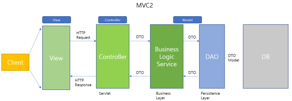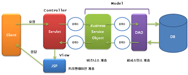 View에 보내서 화면에 반영되도록하는 역할을 수행한다. - Controller --> Service --> DAO -->DB서버