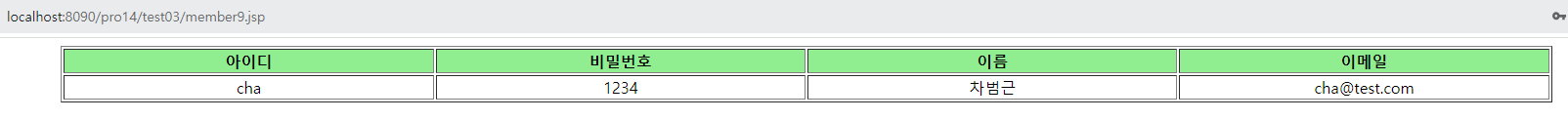 4. 그러면 <c:out> 태그를 이용해 전송된 회원 정보를 출력한다.