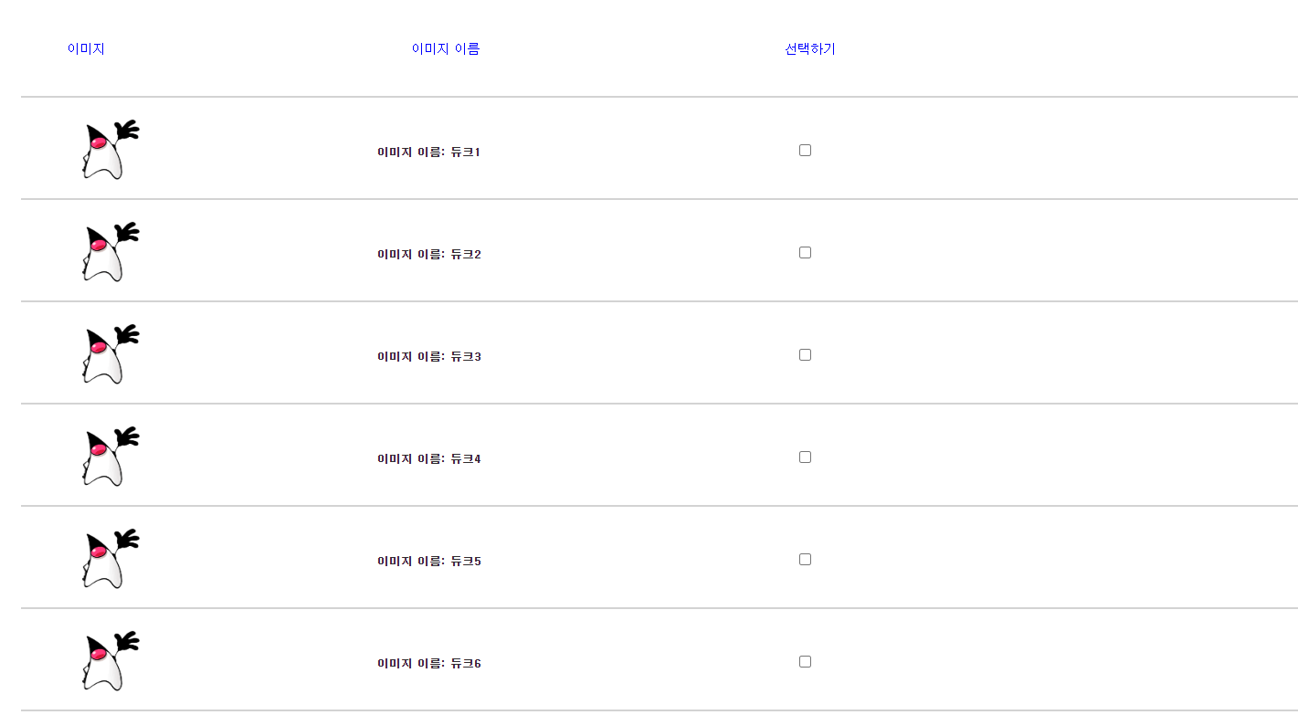 * 이번에는 여러 가지 이미지와 체크박스를 연속적으로 출력하는 프로그램을 <c:forEach> 태그를 사용해 만들어 보자.
