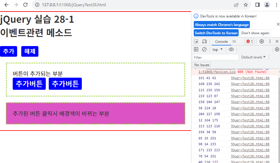 추가된 버튼 클릭시 배경색이 바뀌는 부분