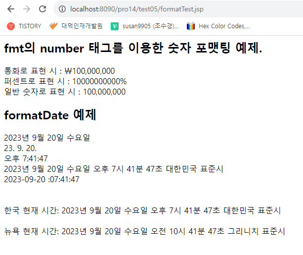 * 다음은 포매팅 태그 라이브러리를 사용하여 여러 가지 숫자와 날짜 정보를 표시해 보자.