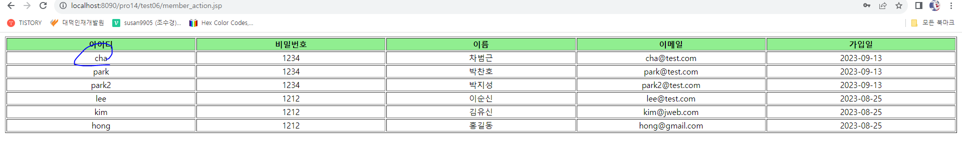 - http://localhost:8090/pro14/test06/memberForm.jsp