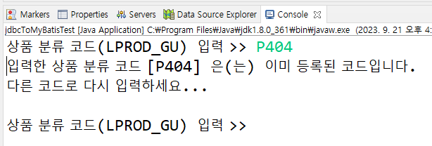 System.out.println("입력한 상품 분류 코드 [" + gu + "] 은(는) 이미 등록된 코드입니다.");