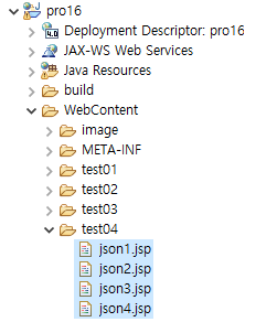 1. 다음과 같이 test04 폴더를 만들고 json1~4까지 jsp 파일을 생성한다.