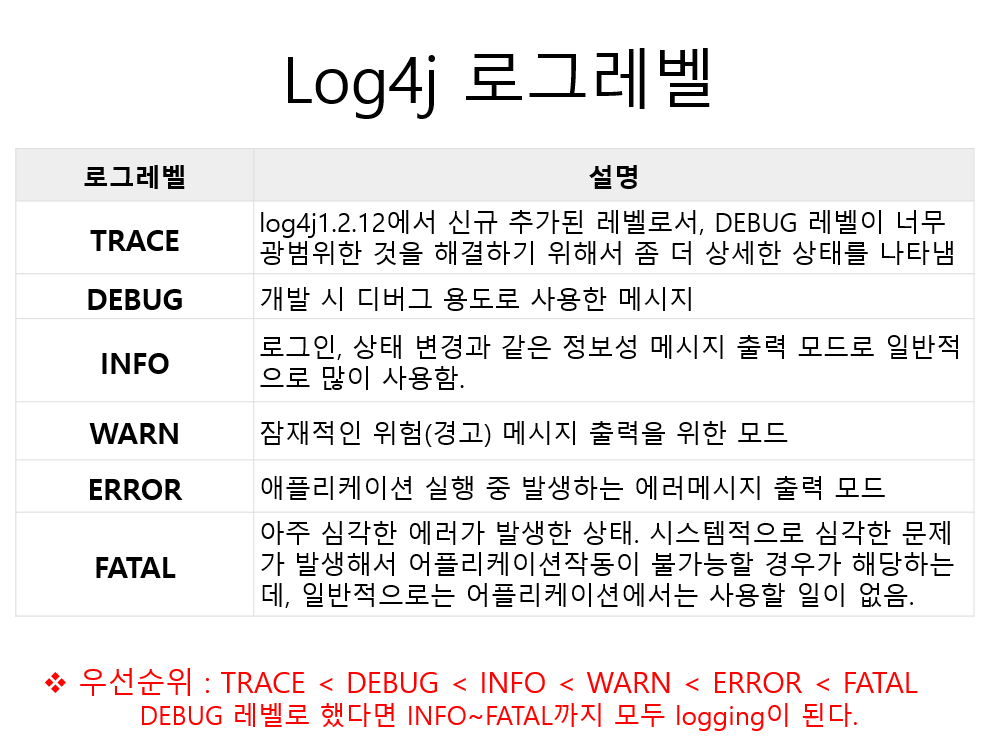 logger.trace("이것은 Log4j의 [TRACE]레벨의 출력입니다...");