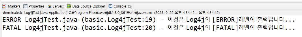 logger.error("이것은 Log4j의 [ERROR]레벨의 출력입니다...");