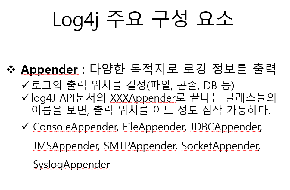 # logfile이라는 appender는 로그를 파일로 출력해주는 놈인데,