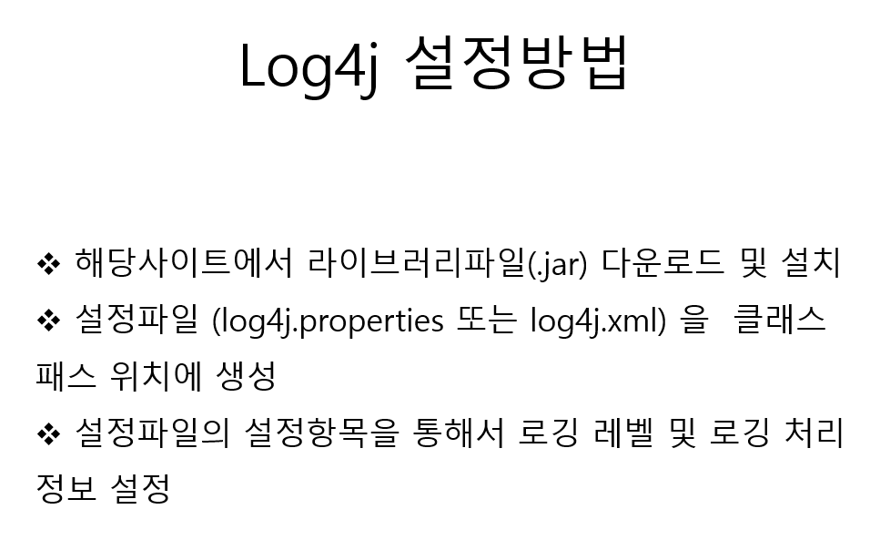 logger.debug("이것은 Log4j의 [DEBUG]레벨의 출력입니다...");