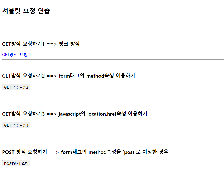 <h3>POST 방식 요청하기 ==> form태그의 method속성을 'post'로 지정한 경우</h3>