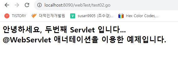 out.println("@WebServlet 애너테이션을 이용한 예제입니다.</h2>");