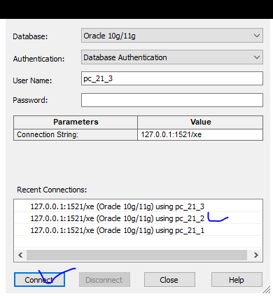 (1) sqlplus sys/java@localhost:1521 as sysdba