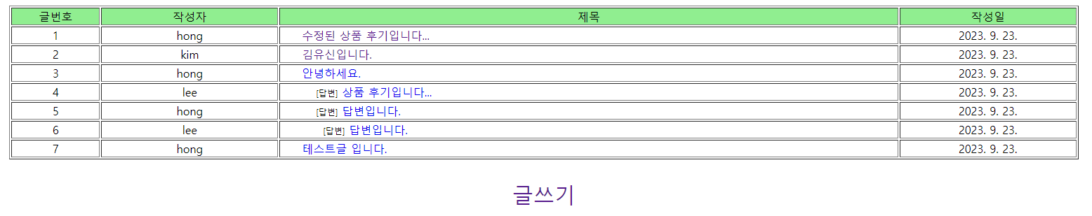 7. 글을 삭제한 후 다시 글 목록을 표시한다.