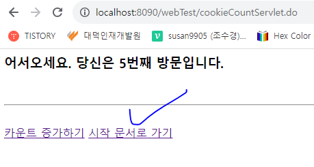 out.println("<a href='"+ request.getContextPath() +"/cookieCountServlet.do'>카운트 증가하기</a>");
