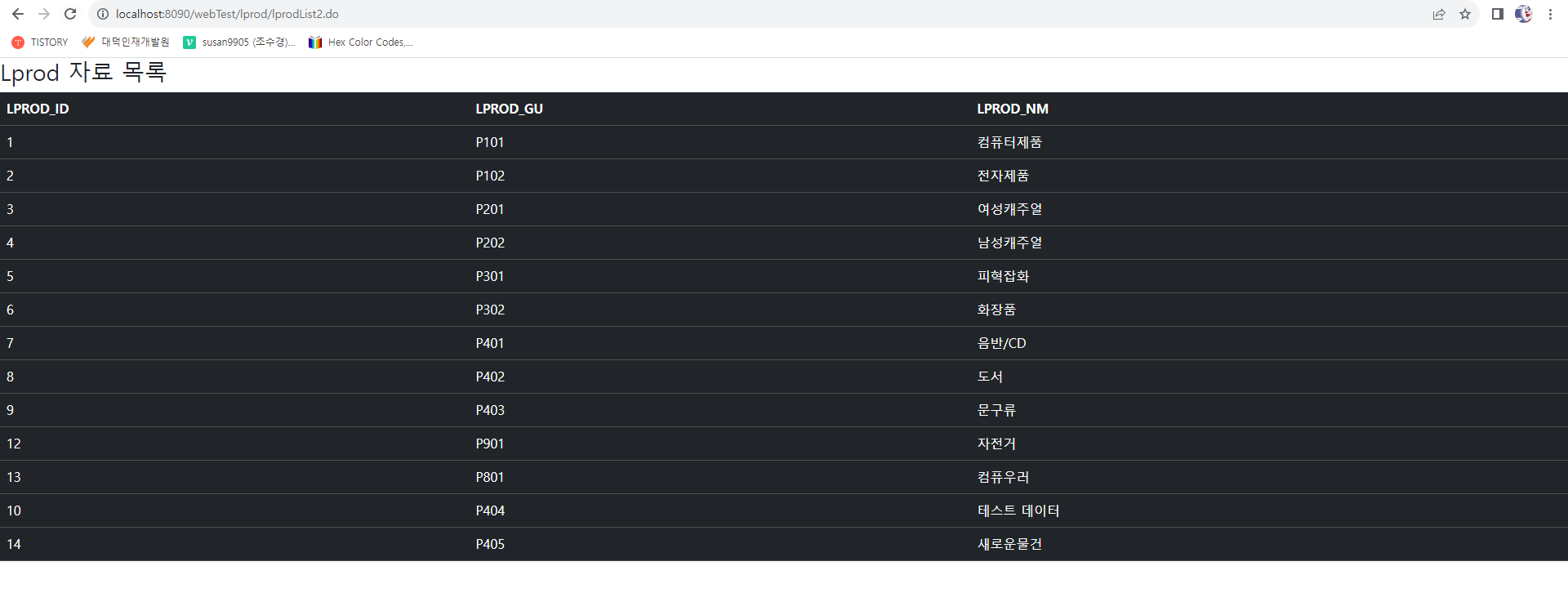<h2>Lprod 자료 목록</h2>