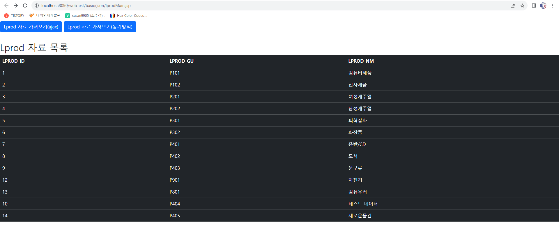 <button id="lprodBtn2" class="btn btn-primary" type="button">Lprod 자료 가져오기(동기방식)</button>