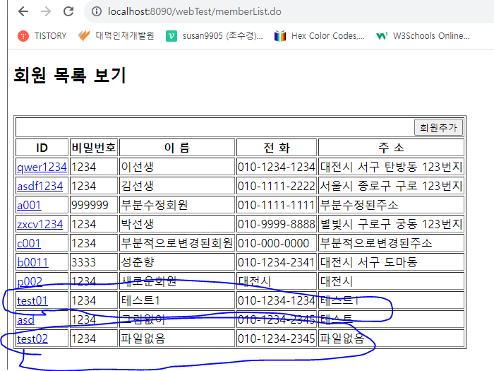 회원목록 출력(memberList) ==> 회원추가버튼 클릭 ==> 회원추가 폼 (자료입력) ==> 저장버튼 클릭 ==> 회원정보 Insert ==> 회원목록 출력(memberList)로 이동