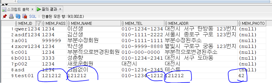MYMEMBER테이블에 'MEM_PHOTO' 컬럼 추가 후 작업