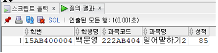 SELECT * FROM SUBJECT; -- 과목 테이블