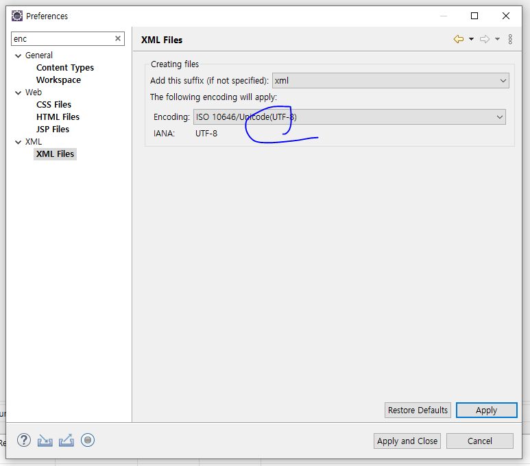 (2) 인코딩 설정을 UTF-8로 바꿈