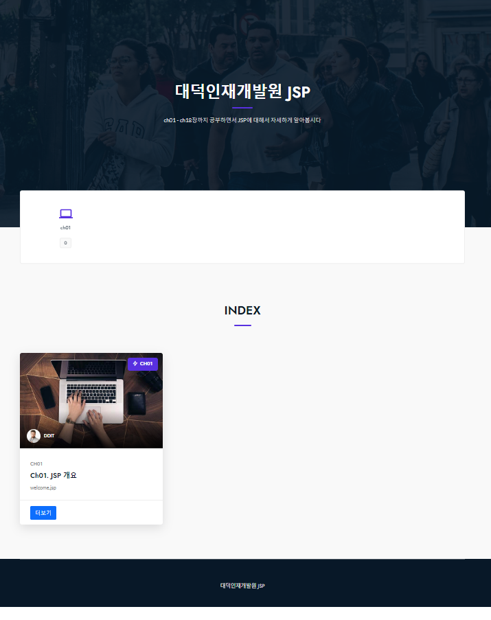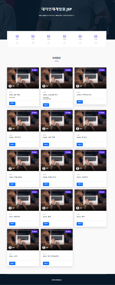 "CH01. JSP 개요", "CH02. 스크립트 태그", "CH03. 디렉티브 태그", "CH04. 액션 태그",