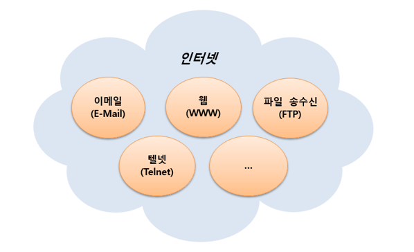[인터넷] : 컴퓨터가 서로 연결되어 TCP/IP 통신 프로토콜을 이용하여 정보를 주고 받는 전 세계의 컴퓨터 네트워크
