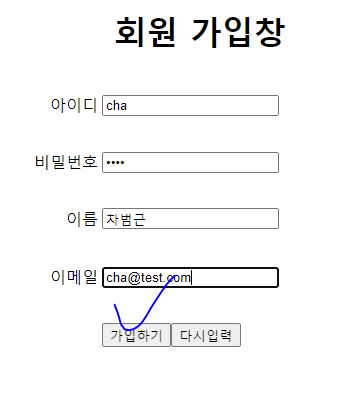 * 이번에는 로그인창이 아닌, 회원 정보 입력창에서 회원 정보를 입력한 후 요청 시 전송된 회원 정보를 표시해 보자.
