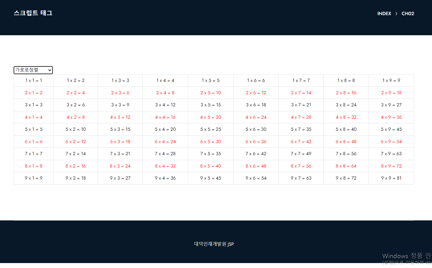 if(value == "1"){ // 가로로 정렬된 모습 보여주기