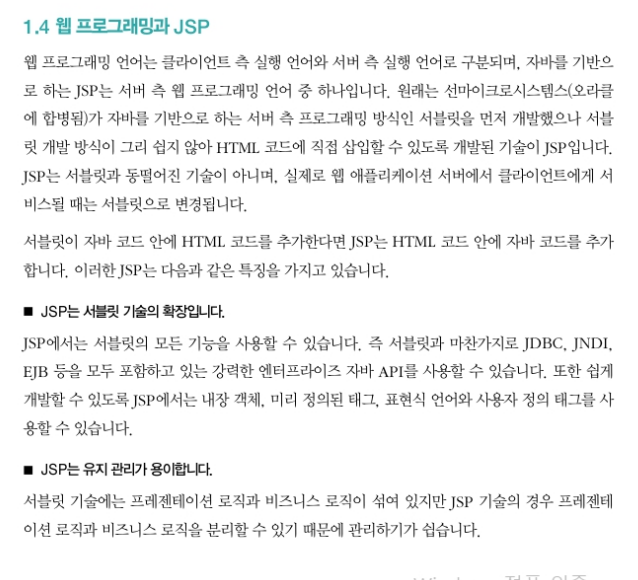 자바를 기반으로 하는 JSP는 서버 측 웹 프로그래밍 언어 중 하나이다.