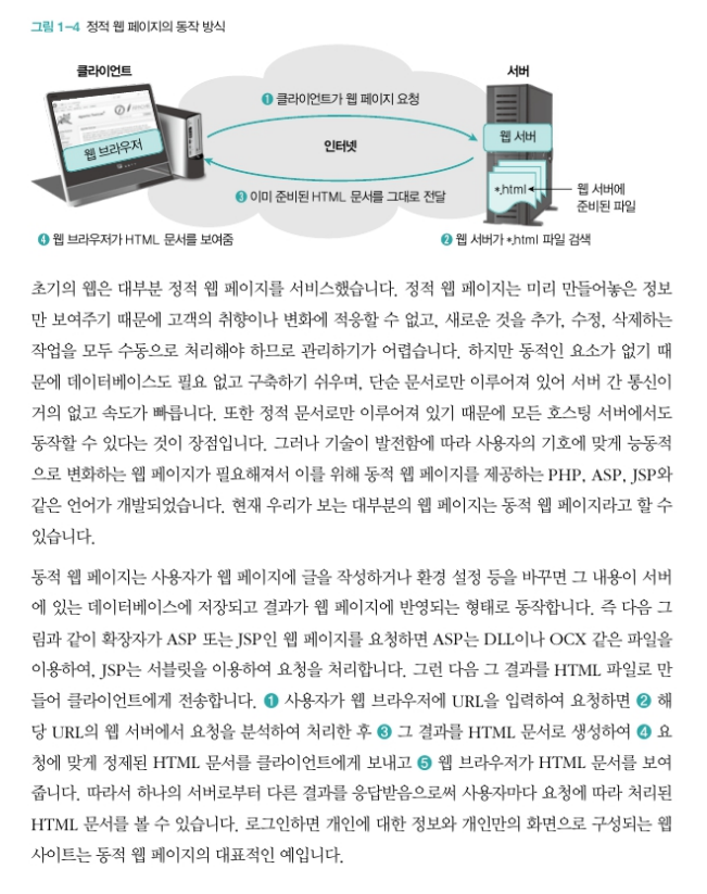 * 정적 웹 페이지는 컴퓨터에 저장된 텍스트 파일을 그대로 보는 것이고,