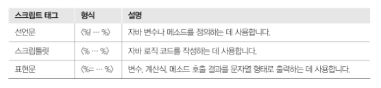 - 세미콜론은 선언문과 스크립틀릿만 가능하다.