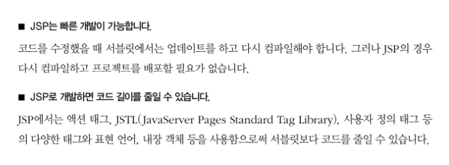 서블릿 기술의 확장인 JSP는 유지 관리가 용이하고 빠른 개발이 가능하며