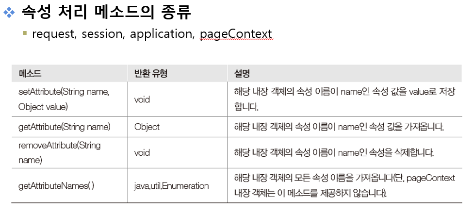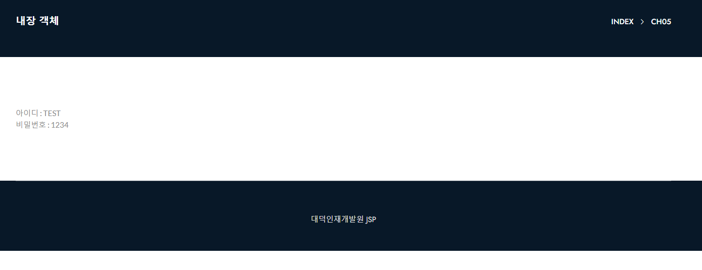 (2) 저장한 데이터를 request와 response의 두 내장 객체를 이용해 데이터를 주고 받는 역할로 활용한다.
