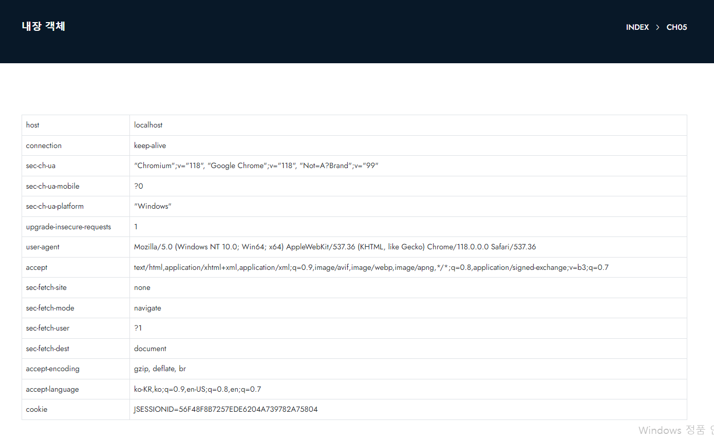 <!-- 현재 헤더 이름과 값을 출력하도록 표현문 태그를 작성함. -->